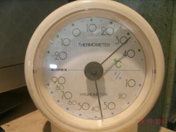 平成25年5月16日(木)晴れ 太陽光発電工事が決まって室内温度の計測を開始・・・左が1階事務所内、右が倉庫内・・・いずれも空調機の使用はしてません。 ちなみに事務所部分は鉄骨造2階建て、外壁ALC、屋根は折板・・・倉庫部分は鉄骨造平屋建て、外壁角波鉄板、屋根は折半という構