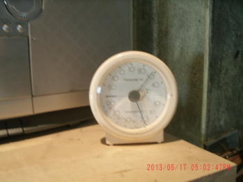 | 平成25年5月17日(金)晴れ 前日に比べやや気温が下がってるにも関わらず、倉庫側は直射光を受けているだけに気温はやや高め、オール鉄板ゆえしょうがないのかも |